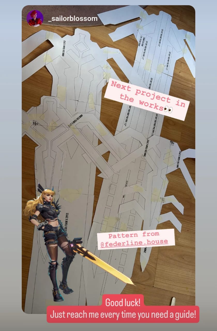 Pattern + Video on YouTube: Eskay Psylocke Vengeance Katana from Marvel Rivals Cosplay Template Blueprint PDF