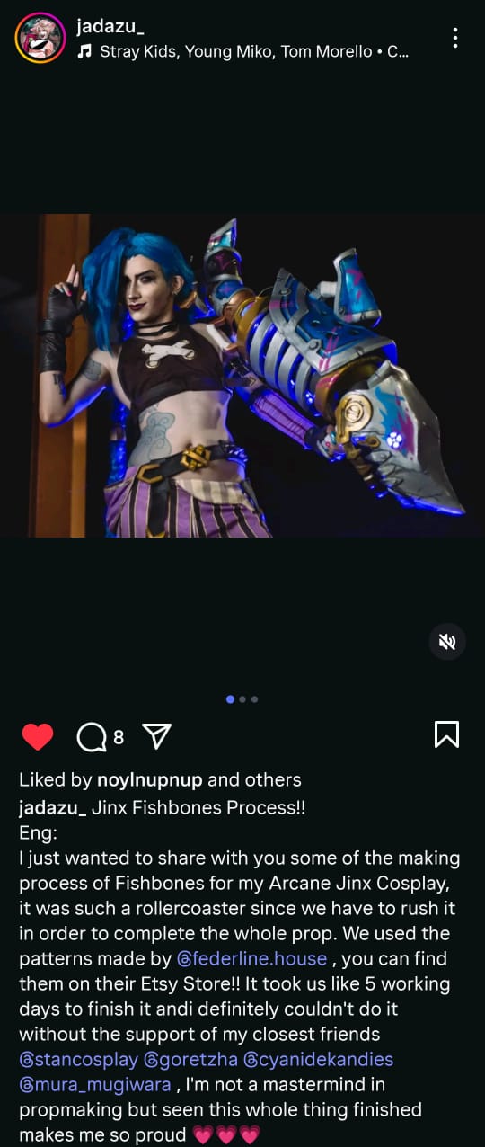 Pattern + Video on YouTube: Jinx Cosplay Fishbones Rocket Launcher from Arcane League of Legends Cosplay Template Blueprint PDF