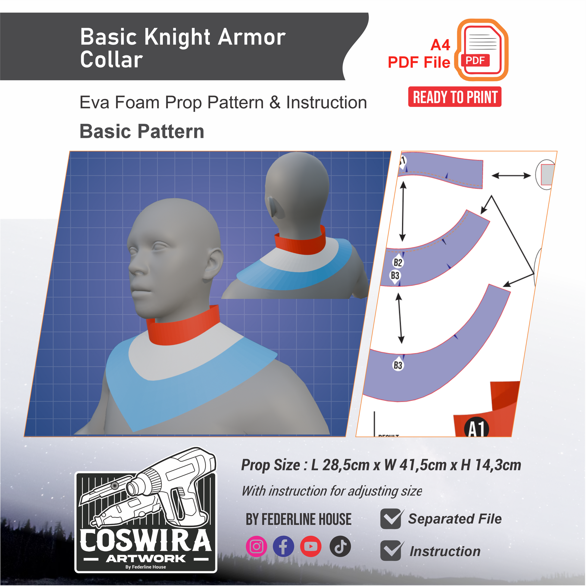 Basic Knight Armor Collar Pattern Template – EVA Foam Cosplay PDF for DIY Armor