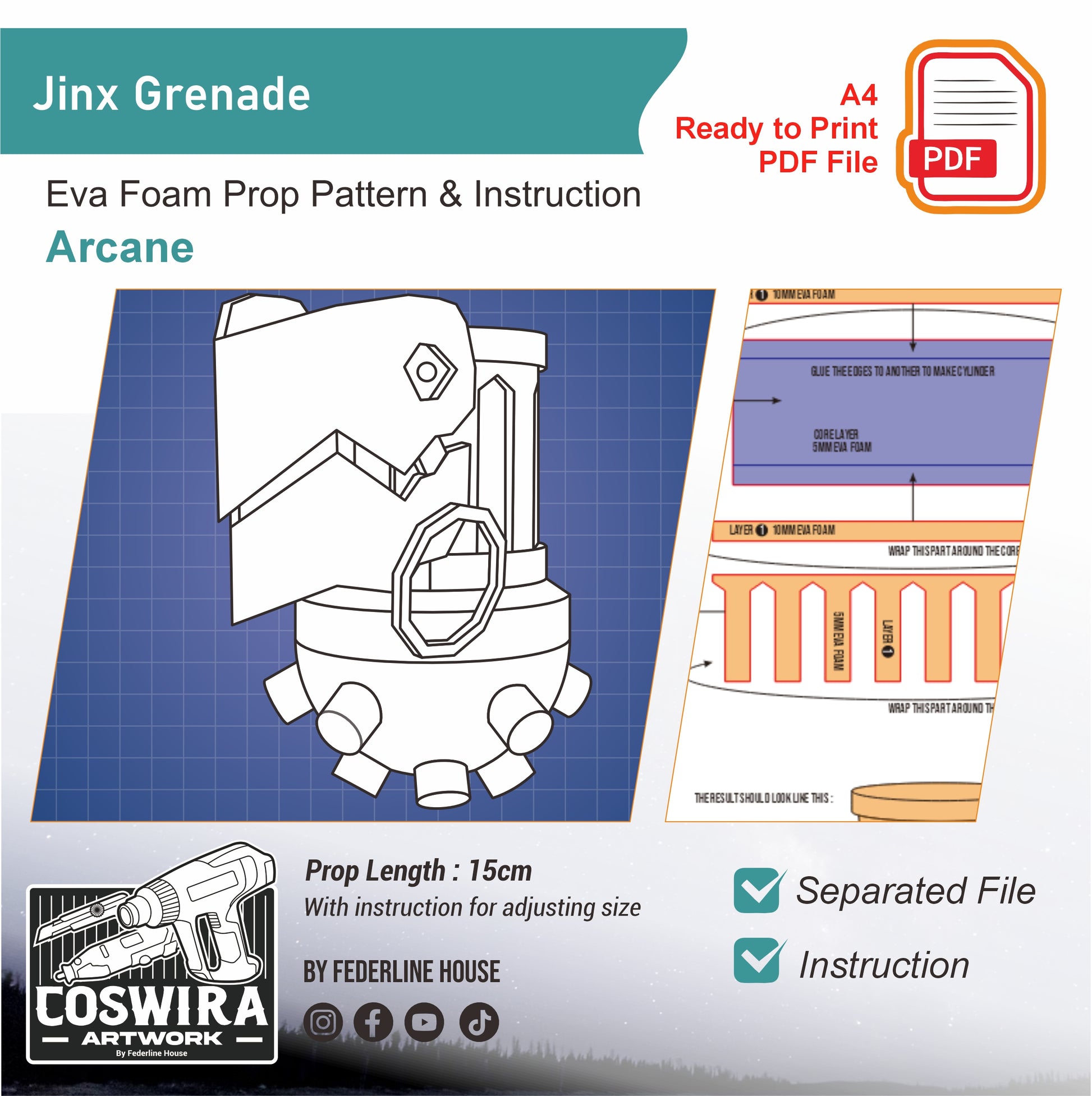 Jinx Grenade Prop Pattern Template – EVA Foam Pattern for Cosplay & DIY Builds Inspired by Arcane