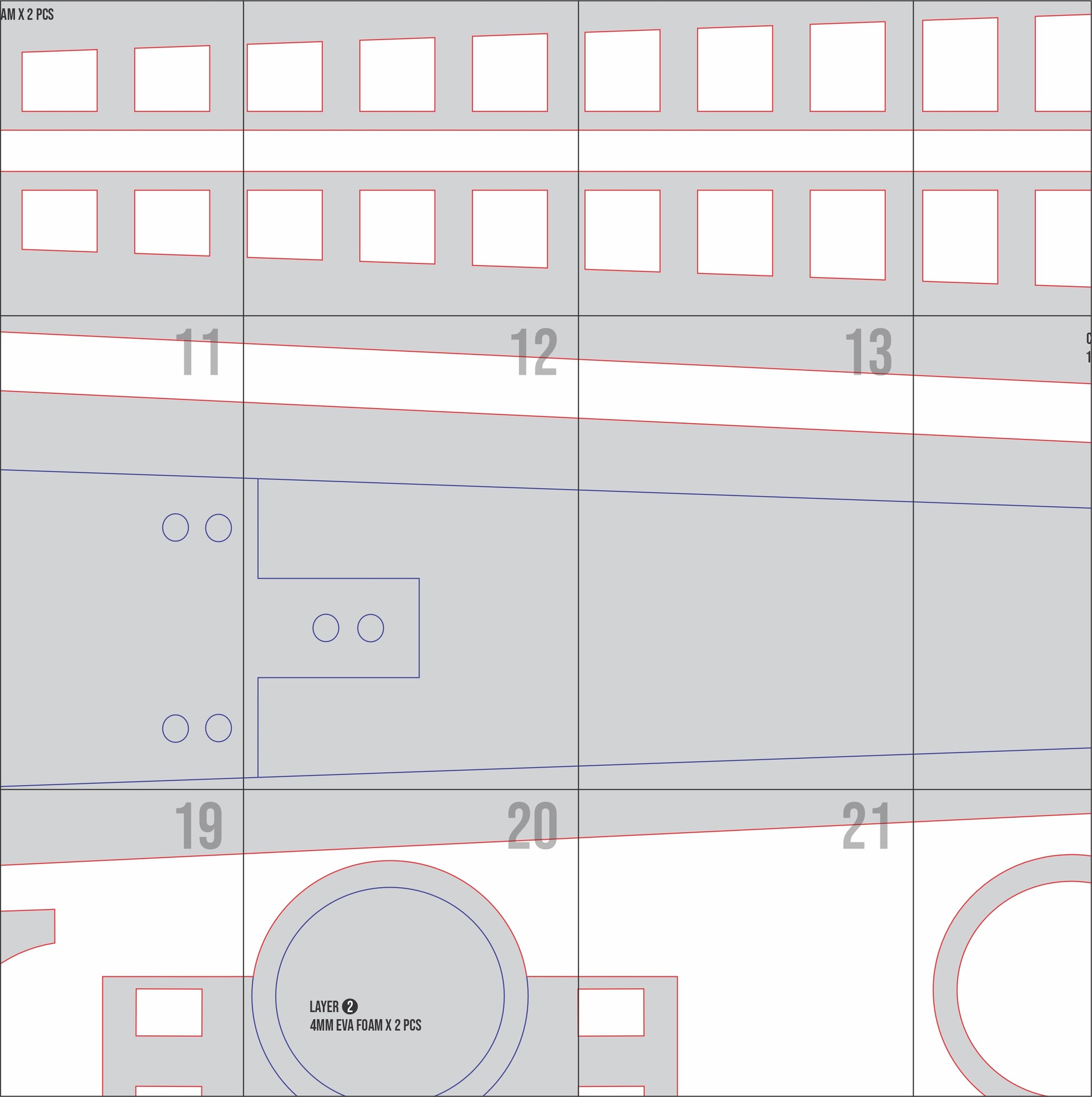 2. Trace the template pieces onto EVA foam or preferred crafting material.