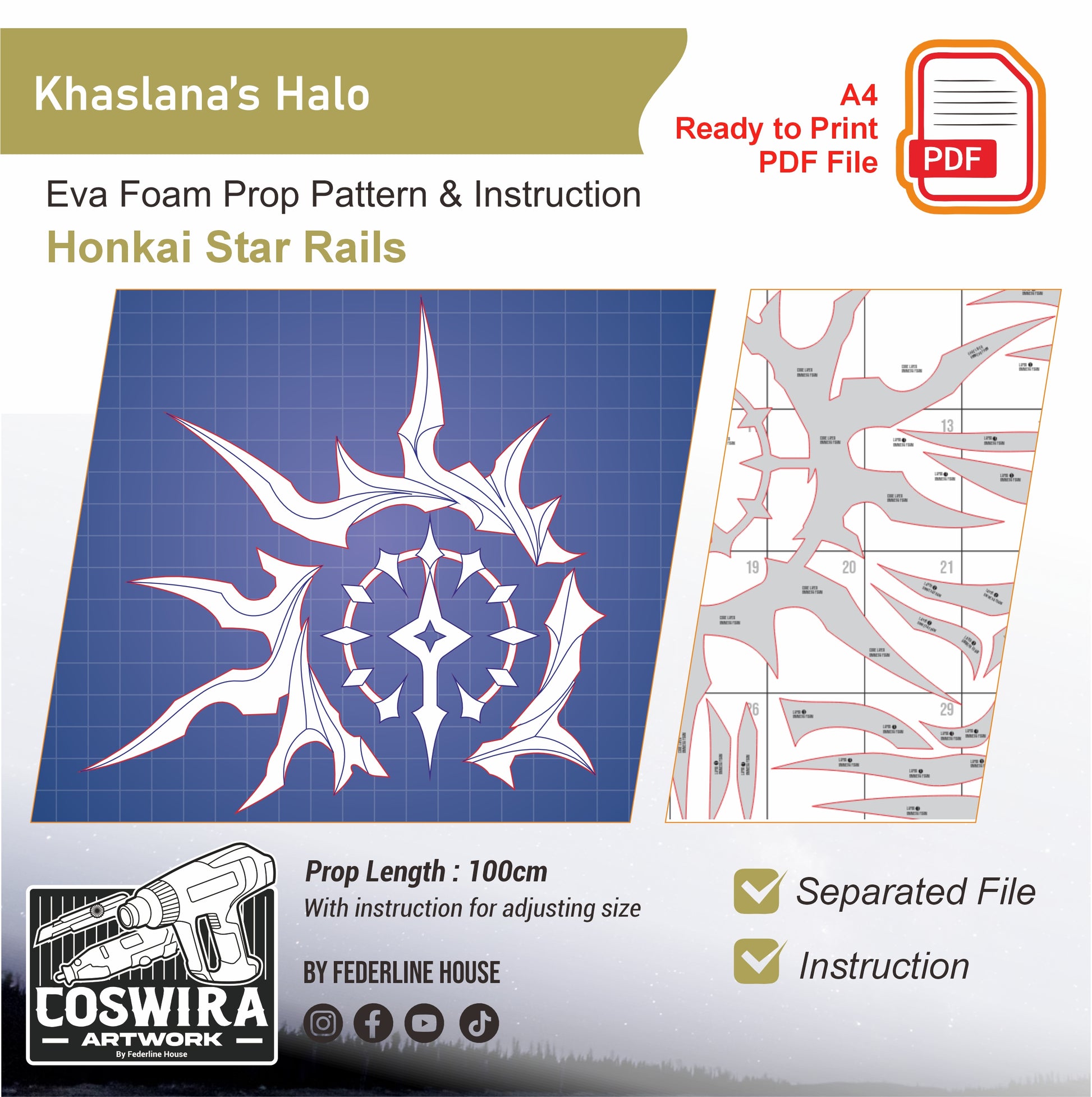 Prop Pattern: Khaslana's Halo from Honkai Star Rail Cosplay Template Blueprint PDF