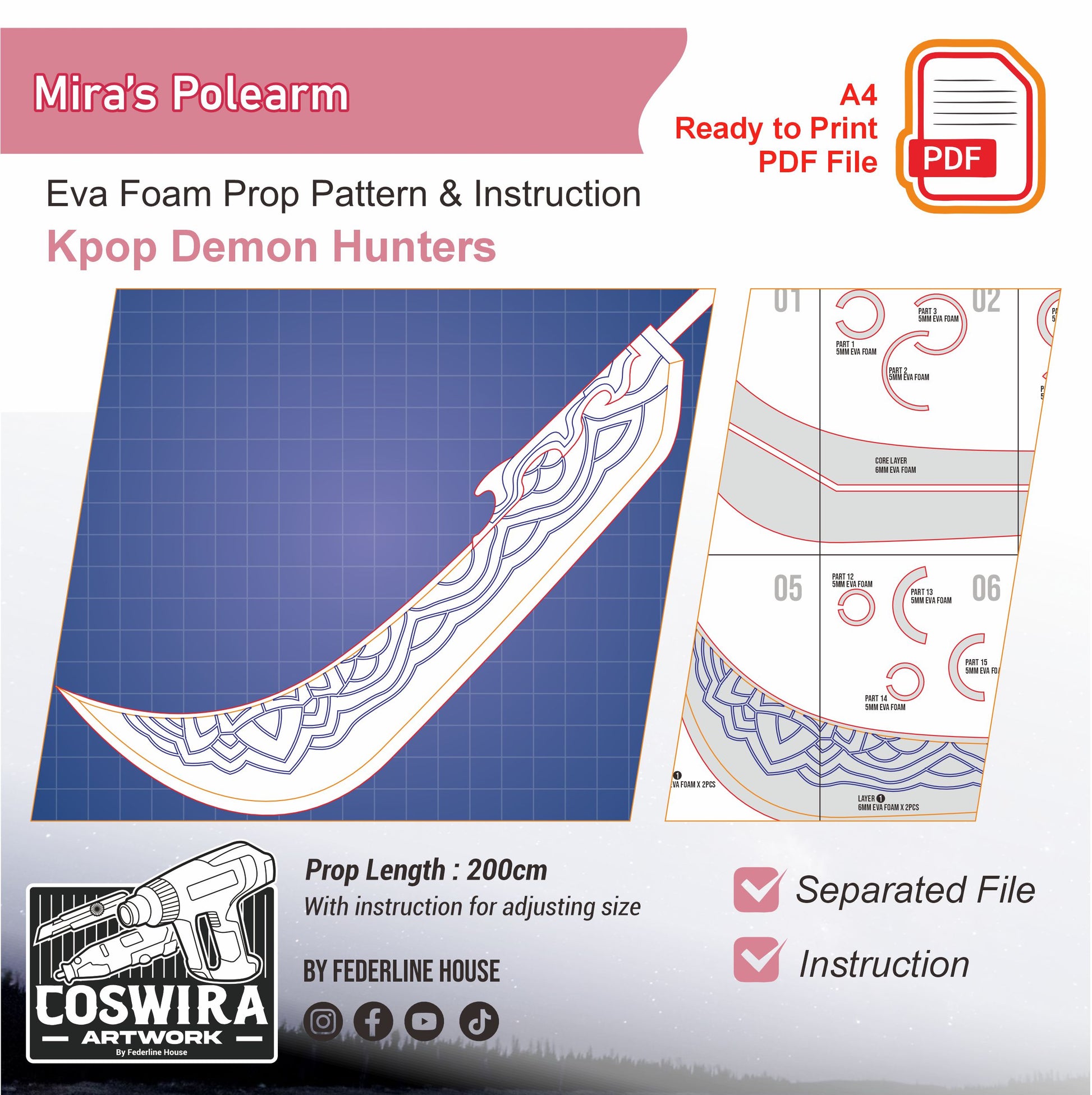 Prop Pattern: Mira Polearm from Kpop Demons Hunter Cosplay Template Blueprint PDF