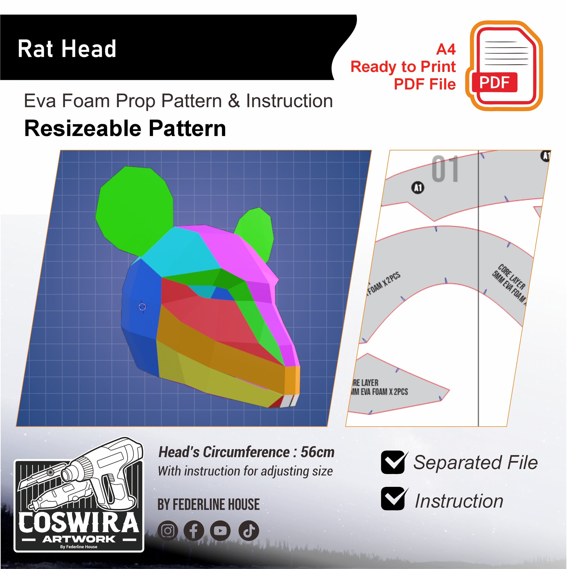 Prop Pattern: Prop Pattern: Rat Head Resizable Cosplay Template Blueprint PDF