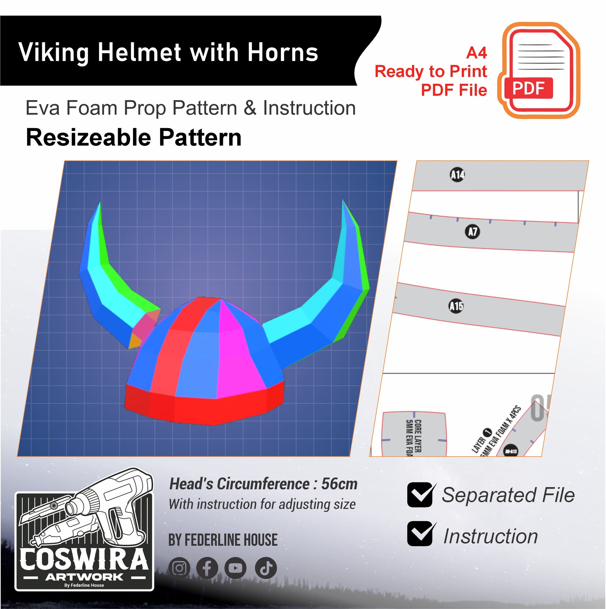 Prop Pattern: Viking Helmet with Horns Resizable EVA Foam Cosplay Template Blueprint PDF
