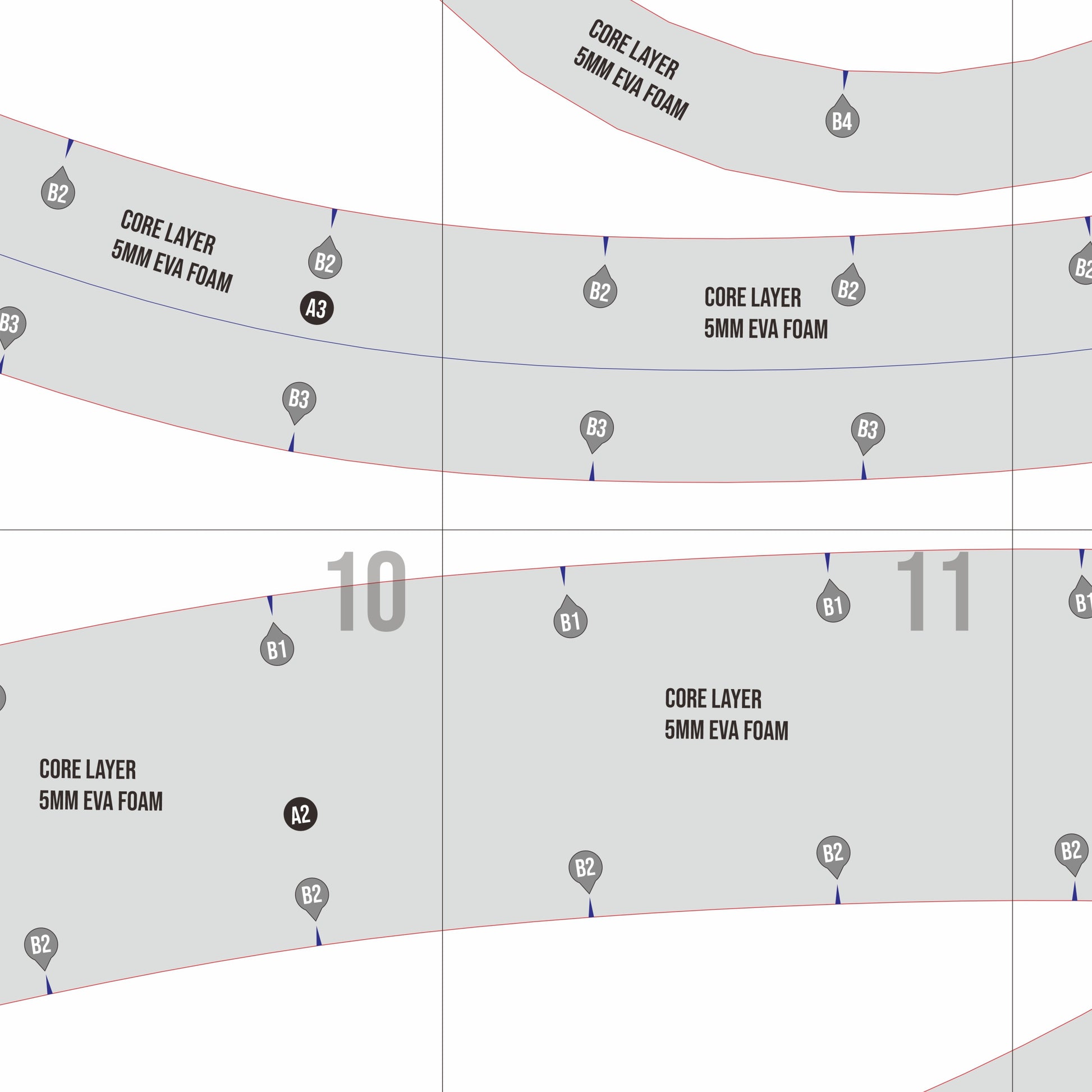 This template uses part-based layout guidance rather than step-by-step instructions, allowing flexibility for creators while remaining approachable for intermediate foam crafters.